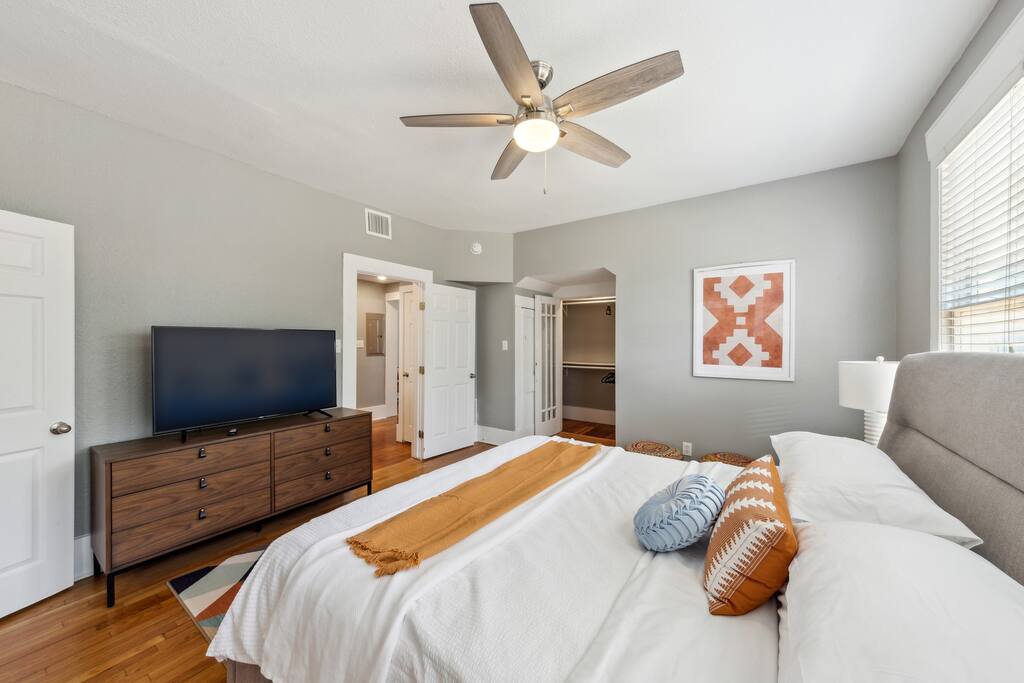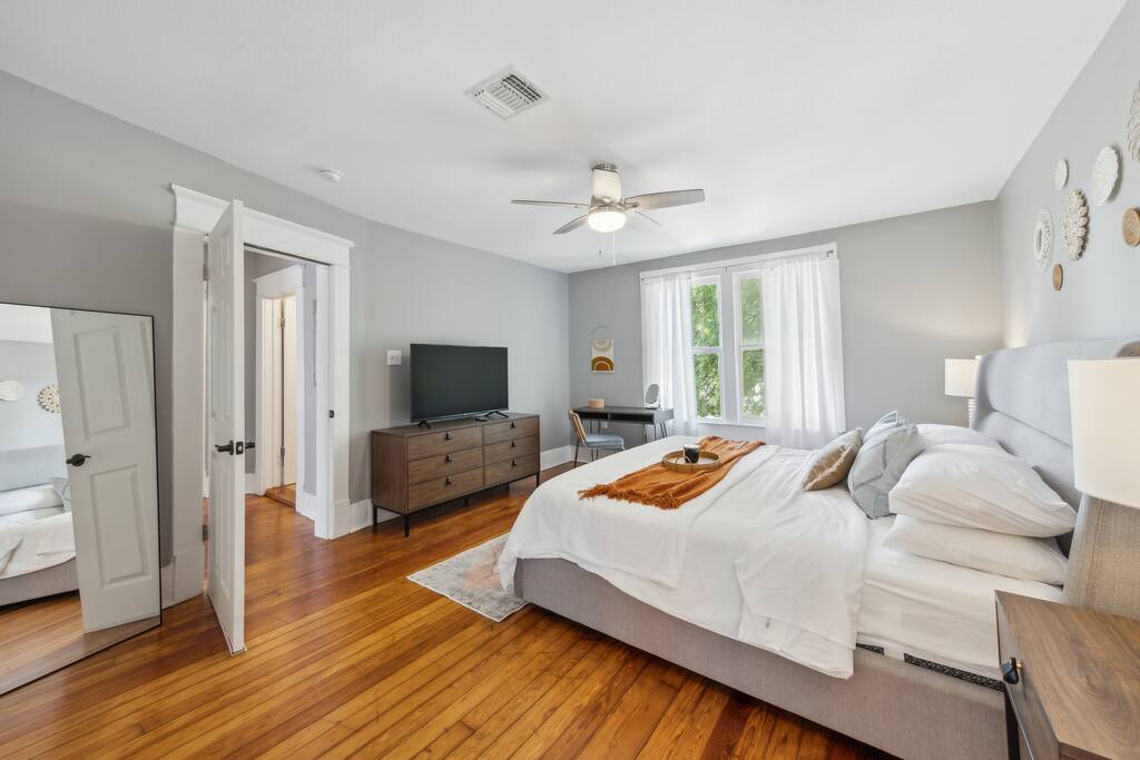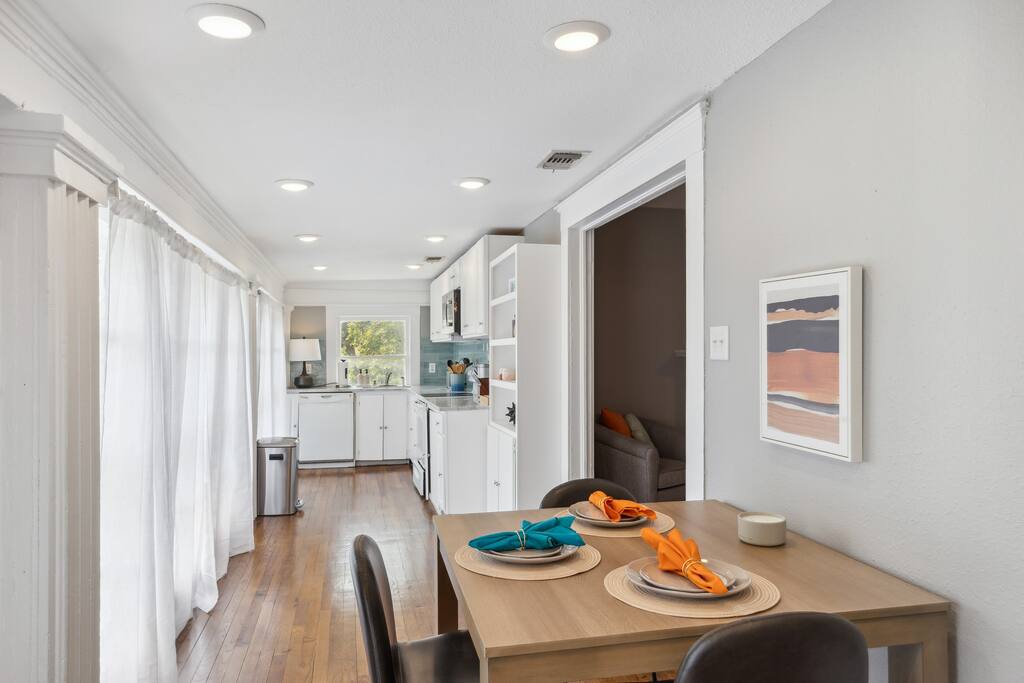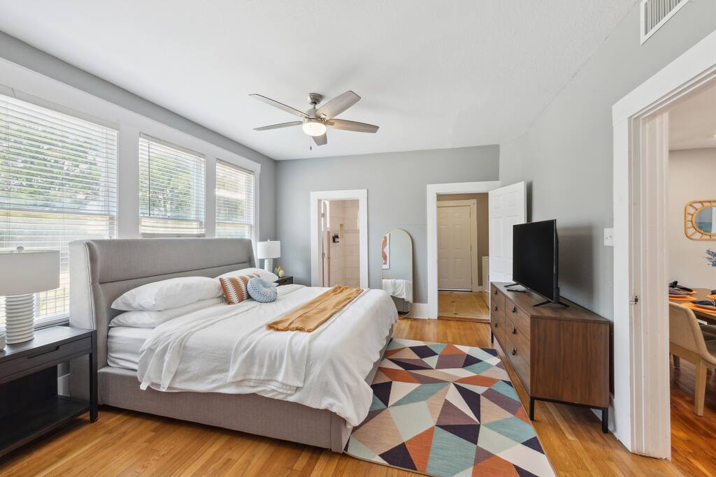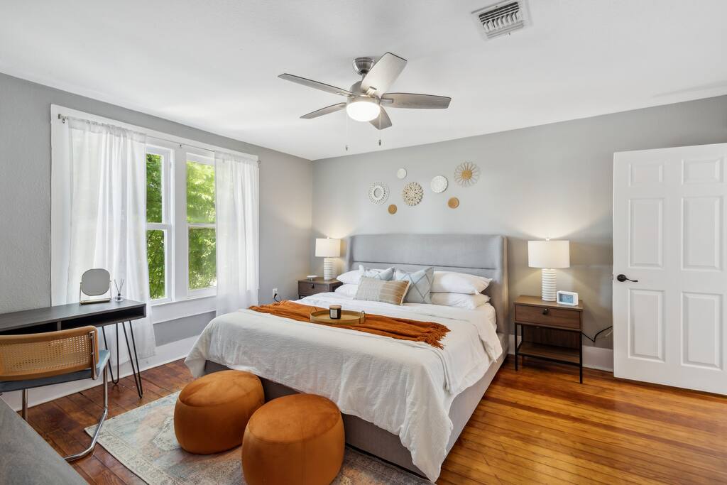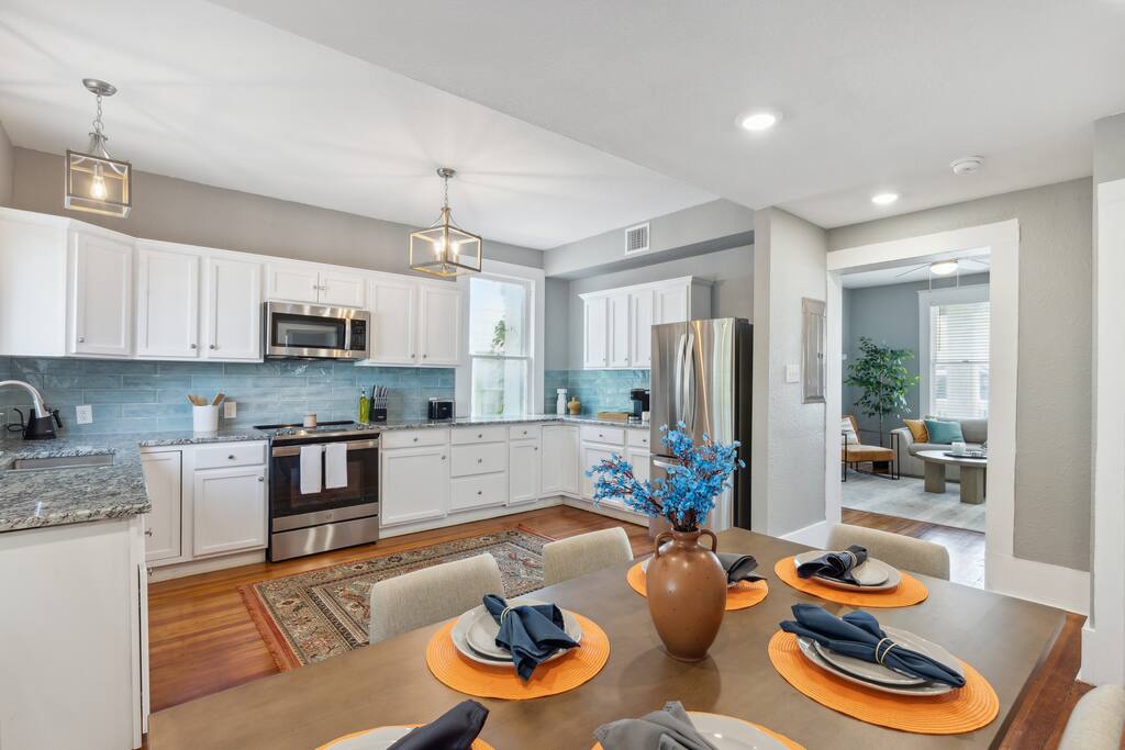This historic 4/3.5 gem has been lovingly renovated to preserve charm while providing modern comforts. Enjoy 2 master suites, both with king beds. Dual living areas and kitchens tell the history of the home as a duplex, and offer friction free stays for large groups or multiple families. Enjoy the spacious backyard, plenty of parking, and family friendly amenities (kids' dishes, high chair, pack n play, baby gate). Your home away from home is close to everything you'll want to do in the city!