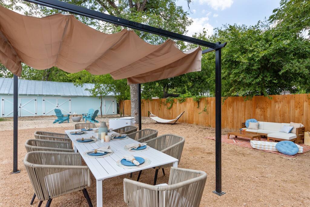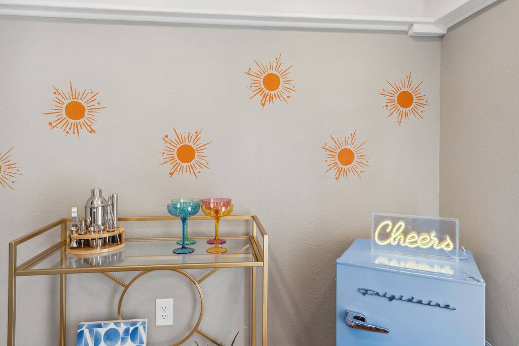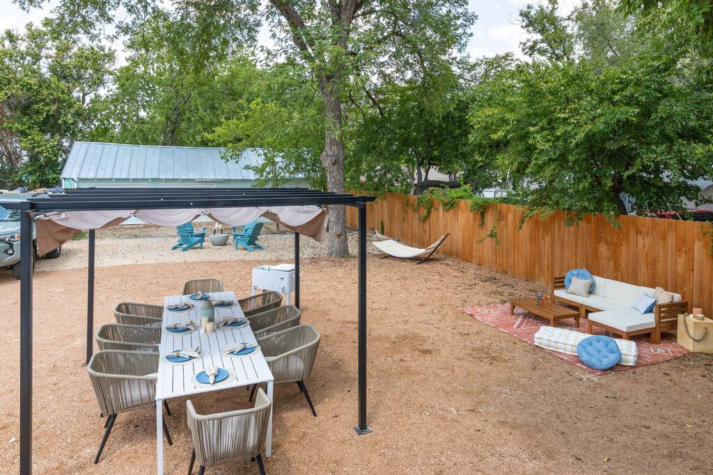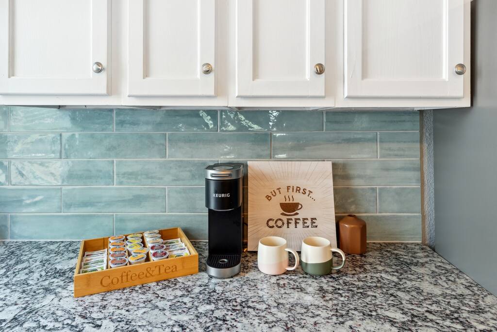 ✦ LIVING ROOM & DEN ✦ ᕯ Comfy couches and seating for large groups ᕯ Retro vibes record player and assorted records ᕯ Entertainment on your terms with big screen smart TVs ᕯ Games available for nights in making memories ✦ KITCHEN & DINING ✦ ᕯ Main downstairs kitchen downstairs & kitchenette upstairs ᕯ Both kitchens are fully equipped and ready for your cooking needs ᕯ Plastic kids' dishes, silicone baby eating set, and high chair available ᕯ Large dining table located in the main kitchen ᕯ Kitchenette upstairs with dining or gaming space ᕯ Coffee stations with coffee, tea, and hot chocolate up and downstairs ✦ BEDROOMS & BATHROOMS ✦ ᕯ 4 Bedrooms / 3.5 Bathrooms ᕯ 2 Master Suites with King Beds & Attached Private Bathrooms ᕯ 2 additional bedrooms with comfy Queen beds share a full bath upstairs ᕯ Half bath available off the office space downstairs ᕯ All bedrooms equipped with clothing storage areas and hangars ᕯ 3 of the bedrooms feature big screen smart TVs ✦ OFFICE AREA ✦ ᕯ Remote work-friendly desk and chair ᕯ High speed Wi-Fi for uninterrupted connectivity ᕯ Abundant natural and task lighting from windows & lamps ᕯ Connected half bathroom for convenience ✦ OUTDOORS ✦ ᕯ Front patio equipped for sipping coffee in rocking chairs ᕯ Back patio equipped as an outdoor living space ᕯ Al fresco dining area for 8 under covered pergola ᕯ 2-person hammock perfect for an outdoor nap ᕯ Egg swing chairs in the conversation area ᕯ Adirondack chairs surround a firepit for keeping toasty ᕯ Ample parking space for your vehicles